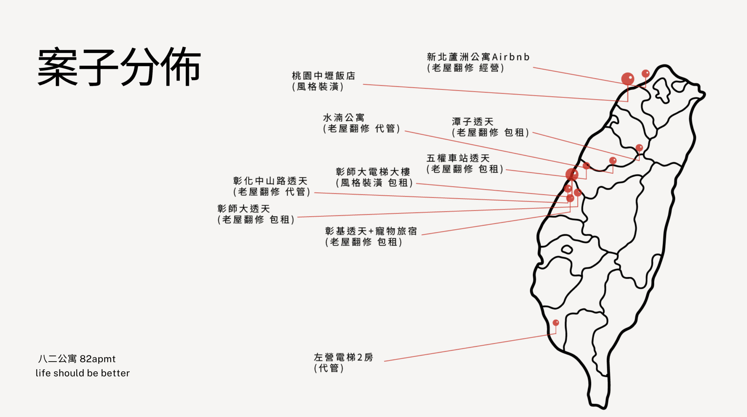 Life should be better生活該是,十分美好 包租代管、收租規劃、老屋翻新Management/DesignRenovation 我們誕生於2021年春天,專注於房屋規劃、出租與管理 Perfection In Every Step We Take.我們每一步都臻於完美。 Life should be better Quality. Safety. Reliability 年專業經驗Digital Contracts 0 + 電子化簽約管理Digital Contracts 0 % 管理中房源Managed Properties 0 + 改造房屋Homes Renovated 0 + 改造案例 更多案例 我們的案子 我們的服務 Our services 包租服務 穩定收租・無後顧之憂 代管服務 彈性委託・安心透明 代租服務 一次合作・找到好租客 老屋翻新 讓空間重拾價值與溫度 我是房客 了解房源 我是房東 管理房屋